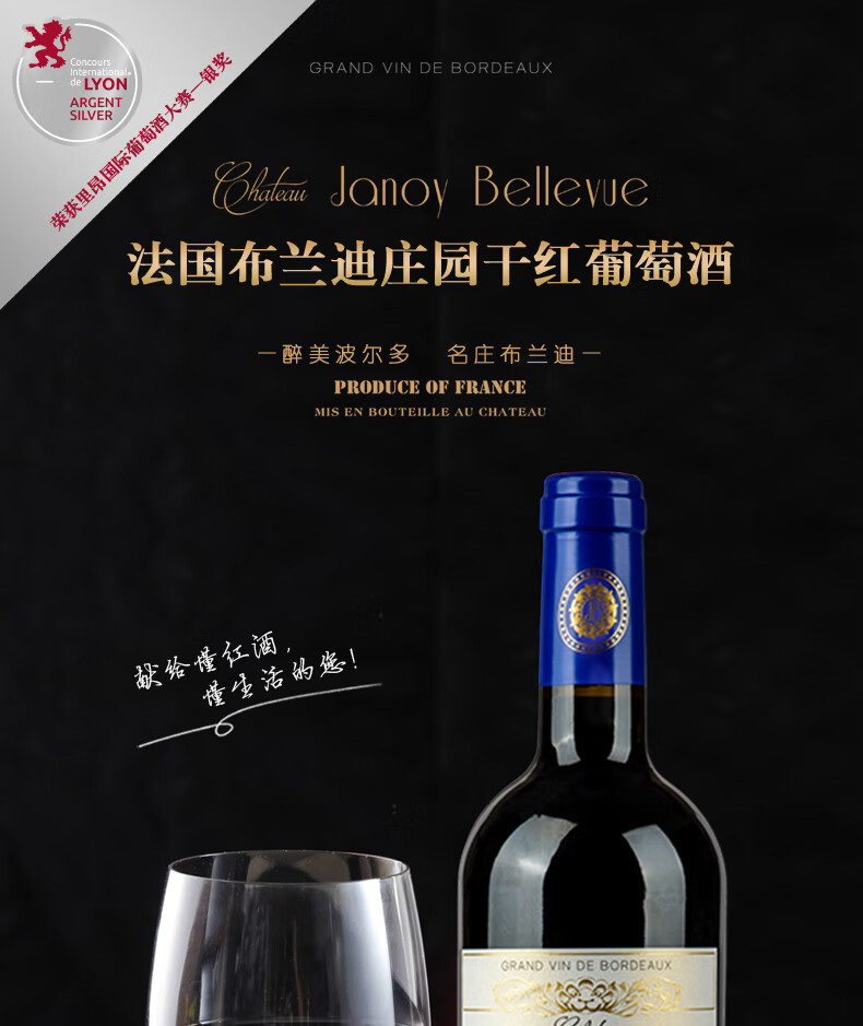 路易城堡(CHATEAU LOUIS)【法国进口红酒】2022布兰迪庄园干红葡萄酒波尔多卡斯蒂隆 750ml 单支装红酒