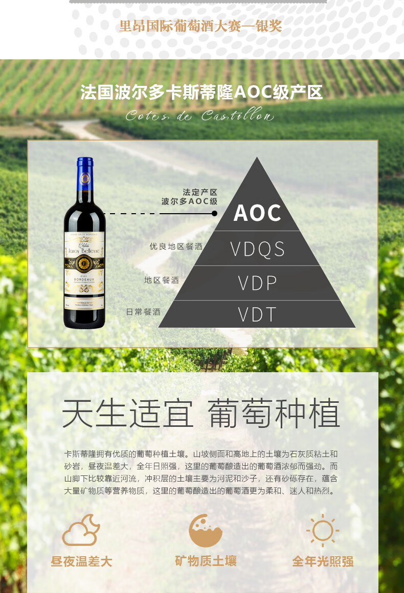 路易城堡(CHATEAU LOUIS)2021布兰迪庄园超波 干红葡萄酒 波尔多卡斯蒂隆【法国进口红酒】 750ml单支装红酒